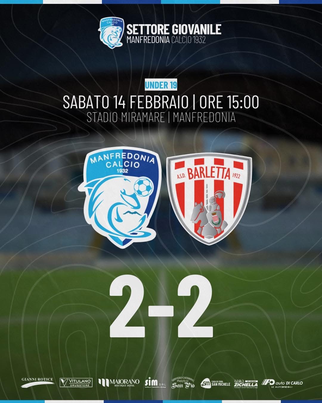 Termina 2-2 la sfida tra la nostra Under 19 e il Barletta, valida per la 21ª giornata del campionato Juniores Nazionale.