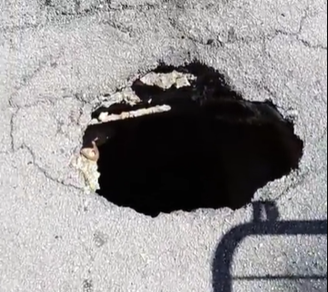 Una voragine si è aperta sul manto stradale di Viale Miramare a Manfredonia, come testimoniato dalle immagini di Giuseppe Marasco.