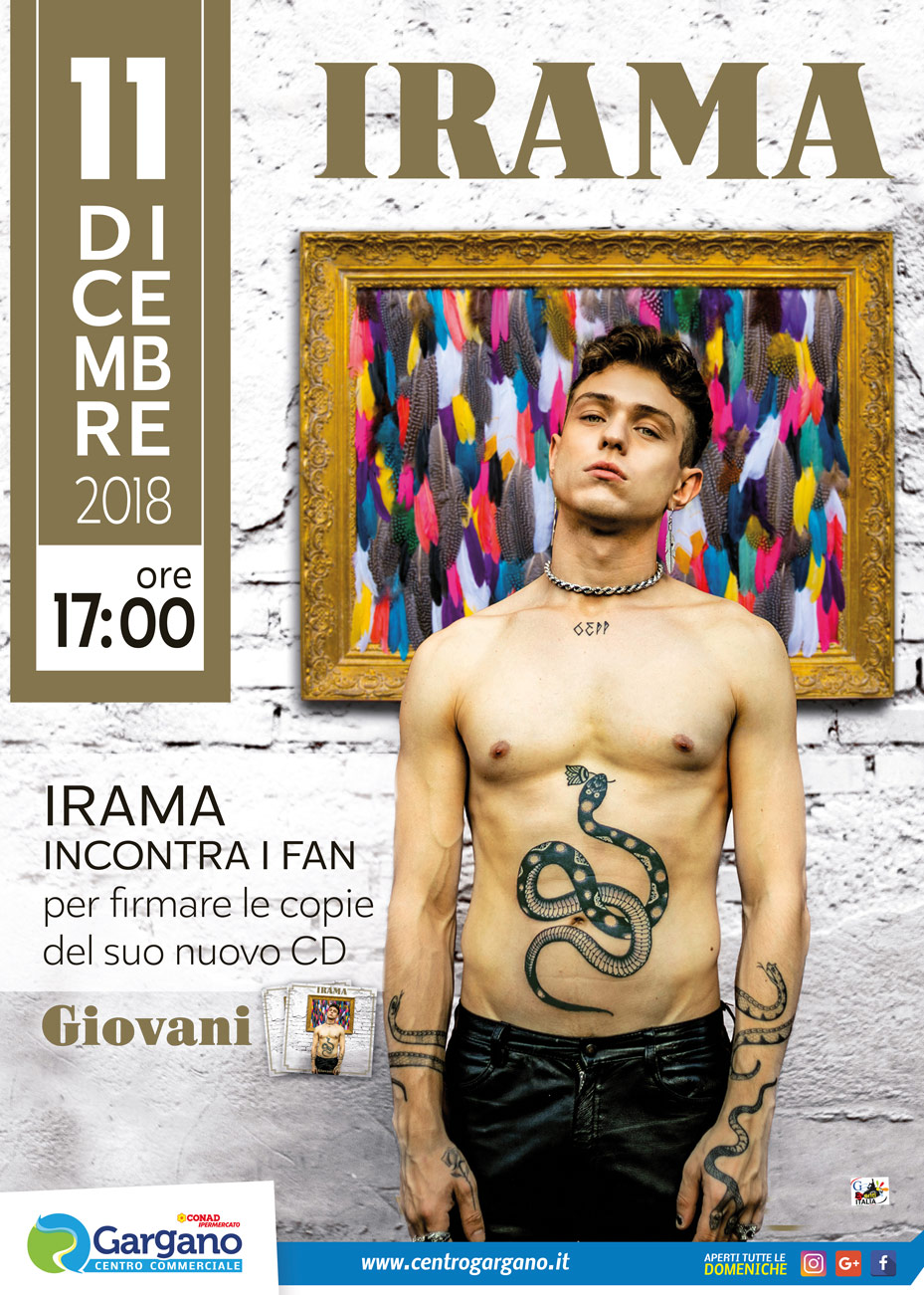che martedì 11 dicembre, dalle ore 17.00, ospiterà il cantante IRAMA.