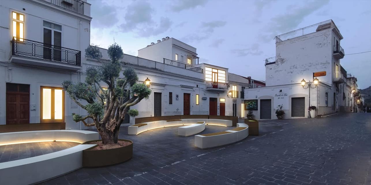 I lavori, oltre alle nuove sedute in pietra e legno, prevedono l’illuminazione led perimetrale alle panche con vasi e fioriere a mo’ di comode spalliere arricchite da numerose essenze vegetali colorate con una sorprendente collocazione di olivi ornamentali a caratterizzare ancora di più l’ispirazione di tutto il concept di progettazione.🫒