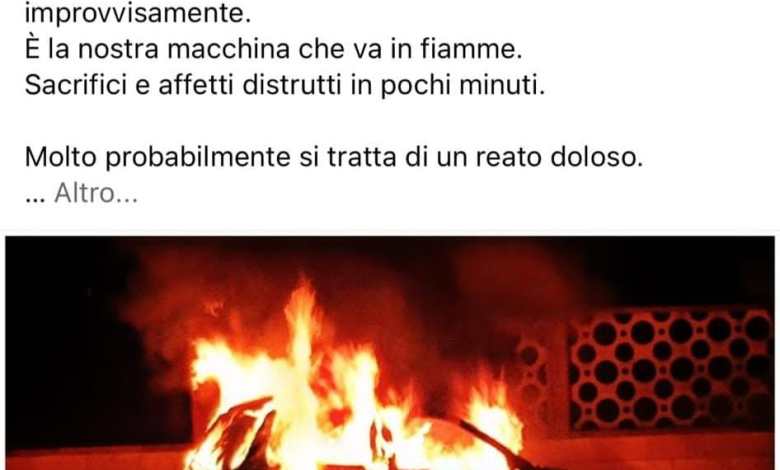 Apprendiamo dalla pagina social di Cosmo, un cittadino di Manfredonia, che nella notte scorsa la sua macchina e stata data alle fiamme.