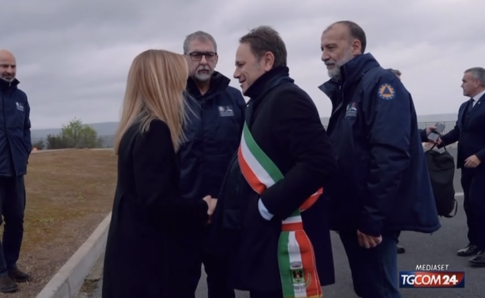 Durante la visita è stata mostrata anche la croce in pietra recuperata dal costone franoso con un drone della Polizia, divenuta simbolo della resistenza della comunità locale. All’arrivo il sindaco ha ribadito la volontà di non arrendersi e la presidente del Consiglio ha assicurato la piena collaborazione dello Stato.