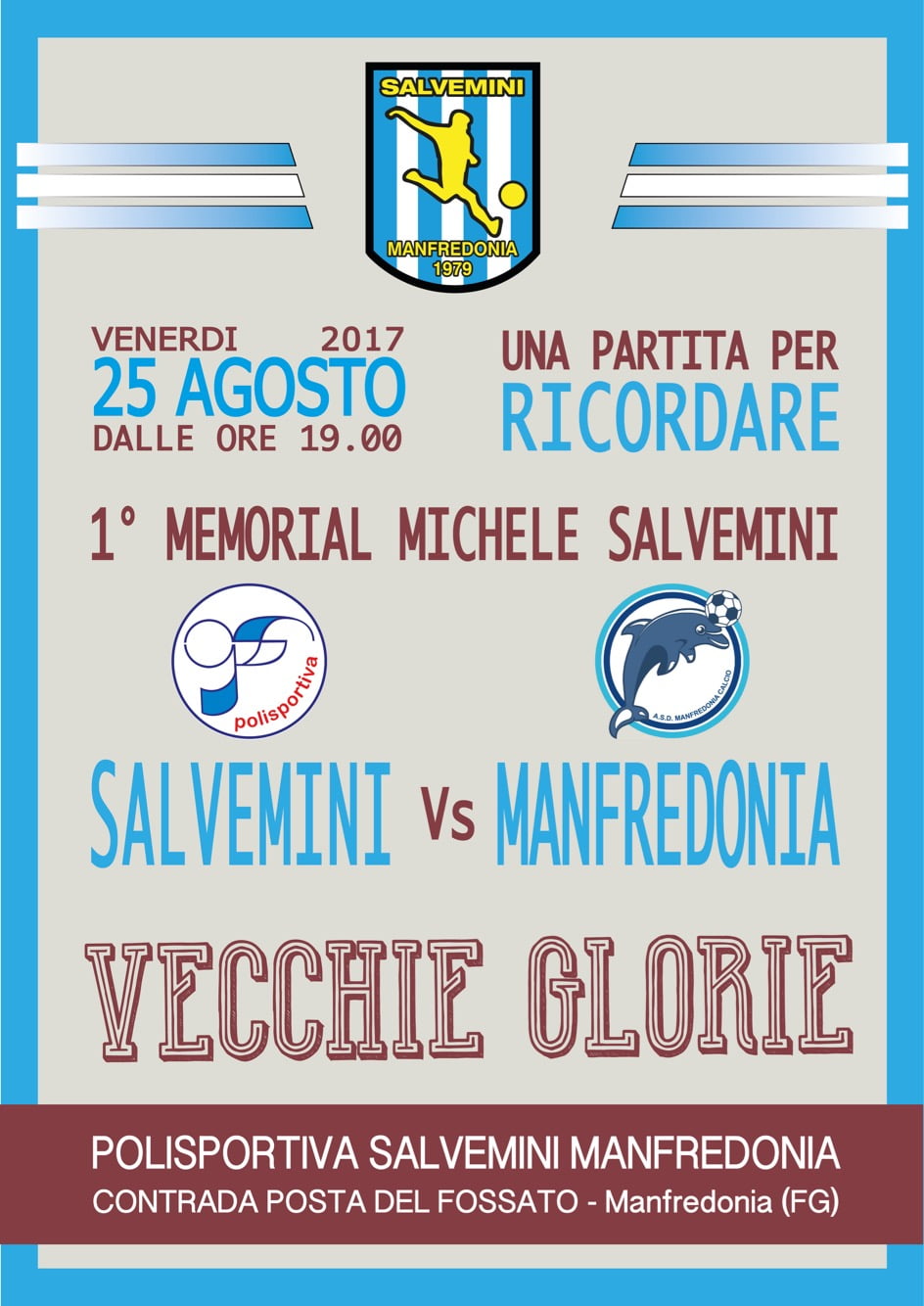 Fervono i preparativi per il  I Memorial Michele Salvemini” che vedrà sfidarsi, venerdì 25 agosto alle ore 19:00, presso gli impianti sportivi Salvemini, le vecchie glorie della “Salvemini” e quelle del “Manfredonia Calcio”.