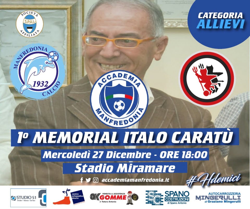 L’Accademia Manfredonia ricorda un grande uomo di sport e non solo, ITALO CARATÙ, con il primo Memorial , che si svolgerà mercoledì 27/12 ore 18.00 Stadio Miramare .