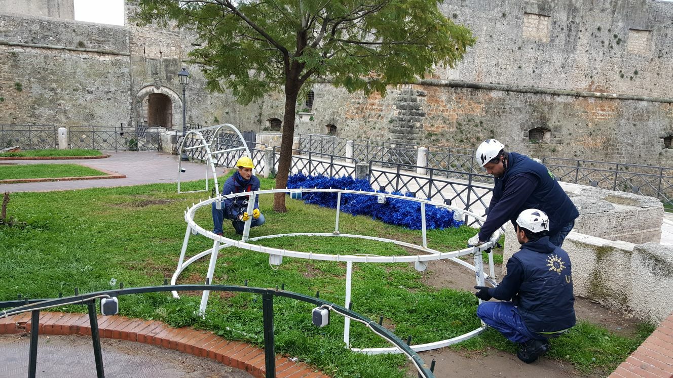 È iniziato questa mattina il montaggio dell’albero di Natale, alto 14 metri, in villa a pochi passi dal Castello.