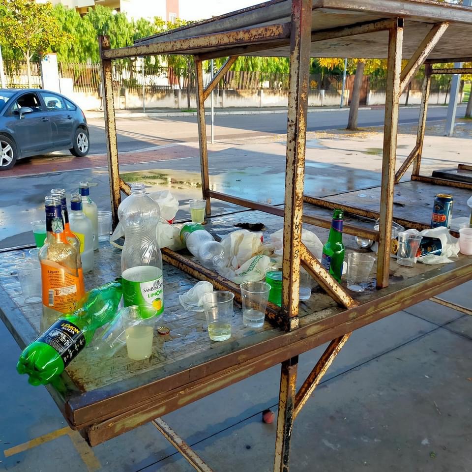 Domani i commercianti troveranno i loro posti occupati da rifiuti, quali: bottiglie e bicchieri rotti sul piazzale e tavoli pieni di sporcizia.