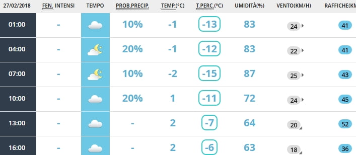 Martedì e mercoledì sarà anche peggio: massime di 2°, minime di -2° con temperature percepite di -15 all’alba di martedì.