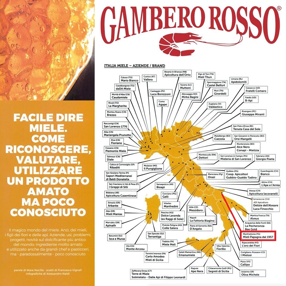 Siamo orgogliosi di essere stati censiti da Gambero Rosso nella mappa di aziende italiane produttrici di Miele, un traguardo che aiuterà tutti i consumatori italiani e non, a selezionare solo i produttori più seri e mieli di alta qualità e ad evitare truffe e contraffazioni.