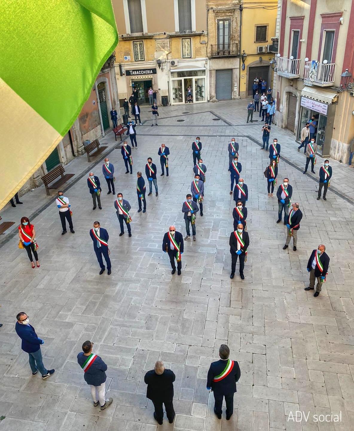 Manifestazione di sostegno e solidarietà dei sindaci di Capitanata al sindaco di San Severo per le gravi minacce ed intimidazioni subite a inizio settimana da parte dei clan locali.
