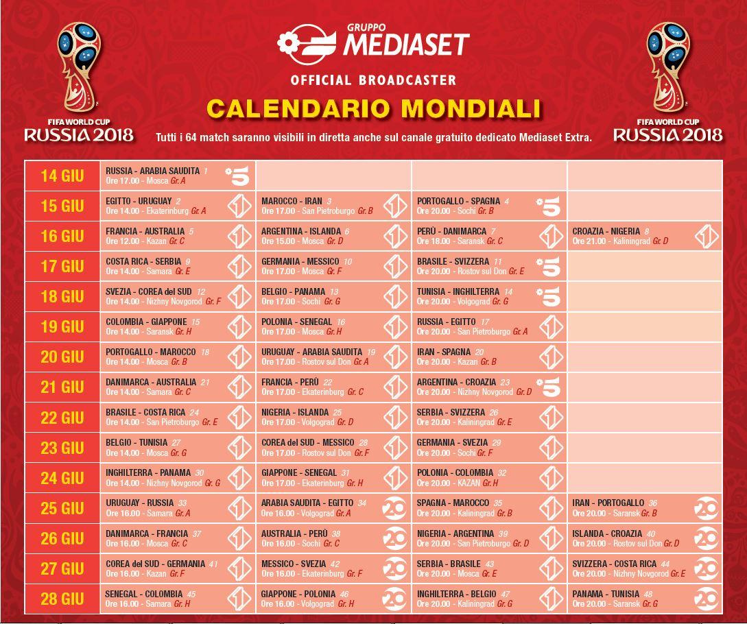 Mondiale, tutto il calendario e la programmazione Mediaset