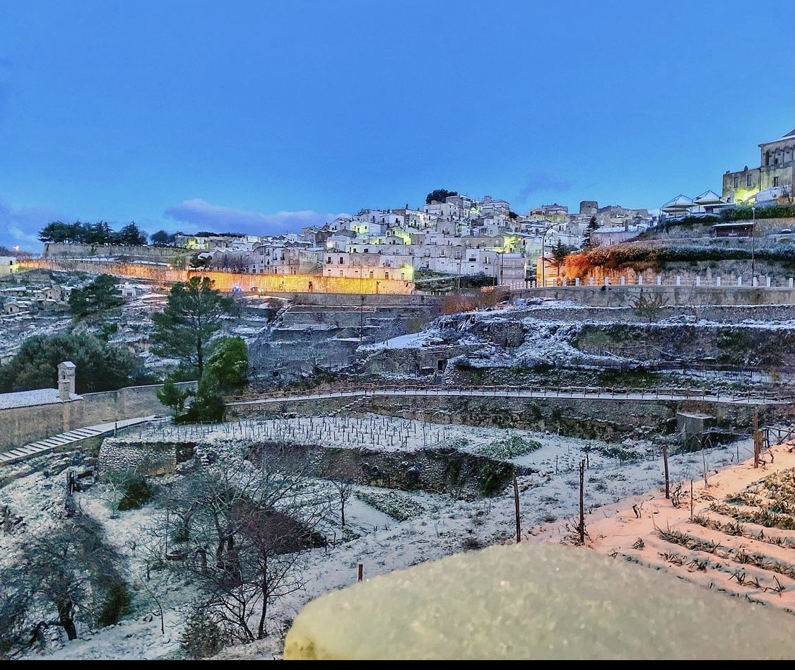 In questo fantastico scatto di Veronica Prioletti, la città dell’Arcangelo è ricoperta dalla coltre bianca. Temperature in risalita da oggi, prima di un nuovo fronte freddo in arrivo nel weekend.