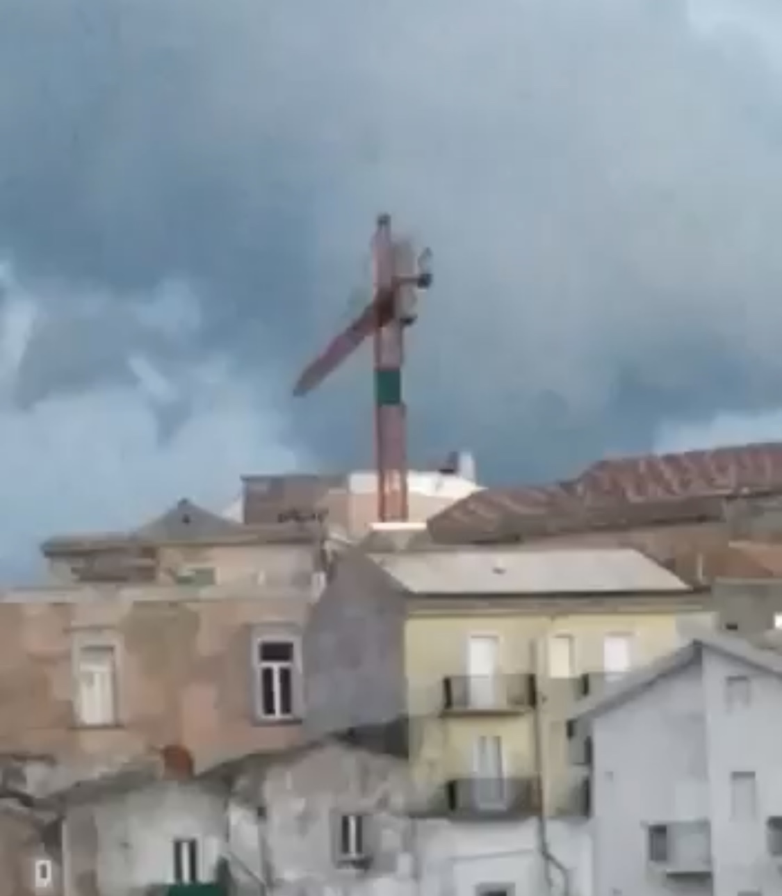 Monte Sant’Angelo, una gru ‘balla’ pericolosamente per via del forte vento – Il video
