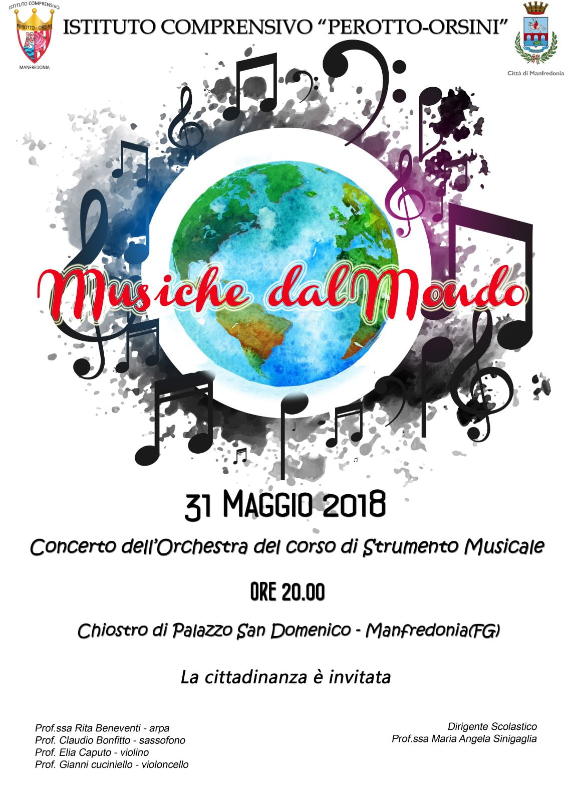 Giovedì 31 maggio alle ore 20:00 i ragazzi e le ragazze del corso musicale si esibiranno in un concerto intitolato “Musiche dal mondo” con le quali toccheranno, e faranno toccare con la fantasia e la musica, paesi e culture lontani.