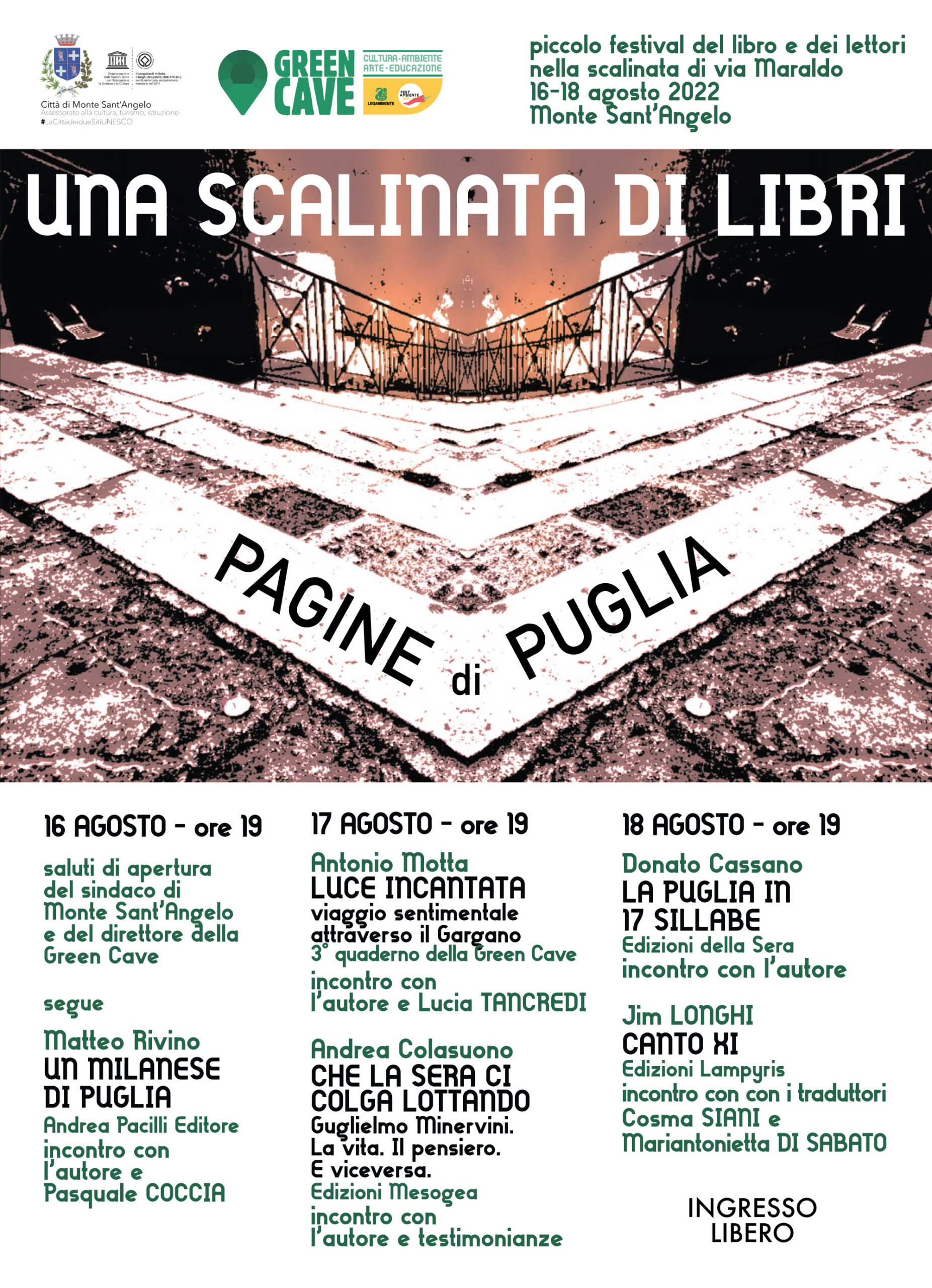 Dal 16 al 18 agosto 2022 a Monte Sant’Angelo, promosso dall’assessorato alla cultura e dalla Green Cave di FestambienteSud, la prima edizione, col titolo PAGINE DI PUGLIA, è dedicato a libri scritti da pugliesi o sulla Puglia.