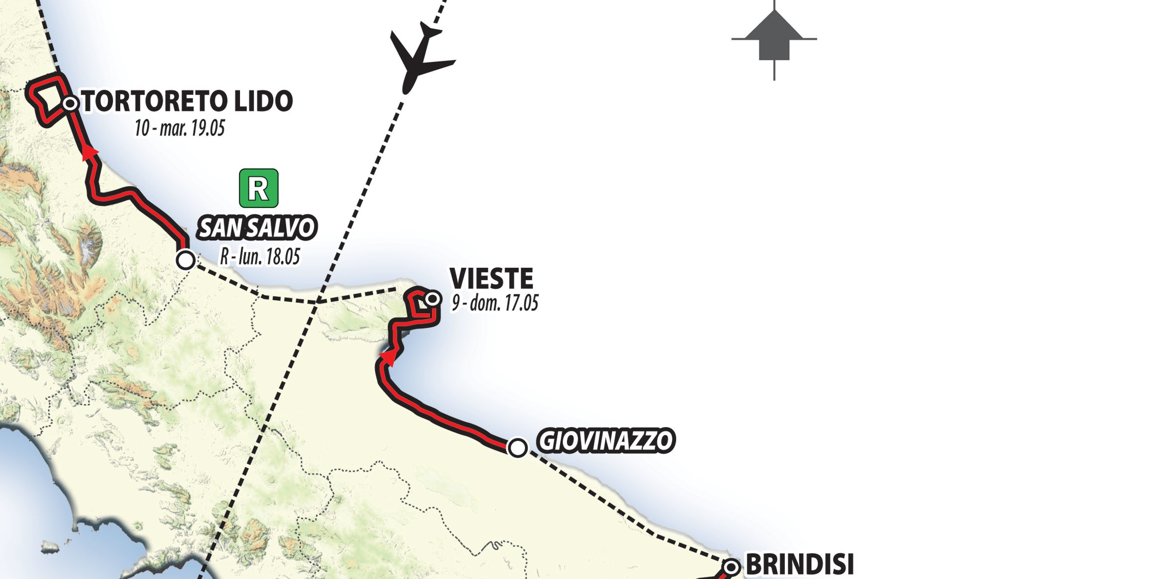 Confermata la tappa di Vieste: la nona che porterà il gruppo da Giovinazzo a Vieste (circuito finale di 12,7 km).