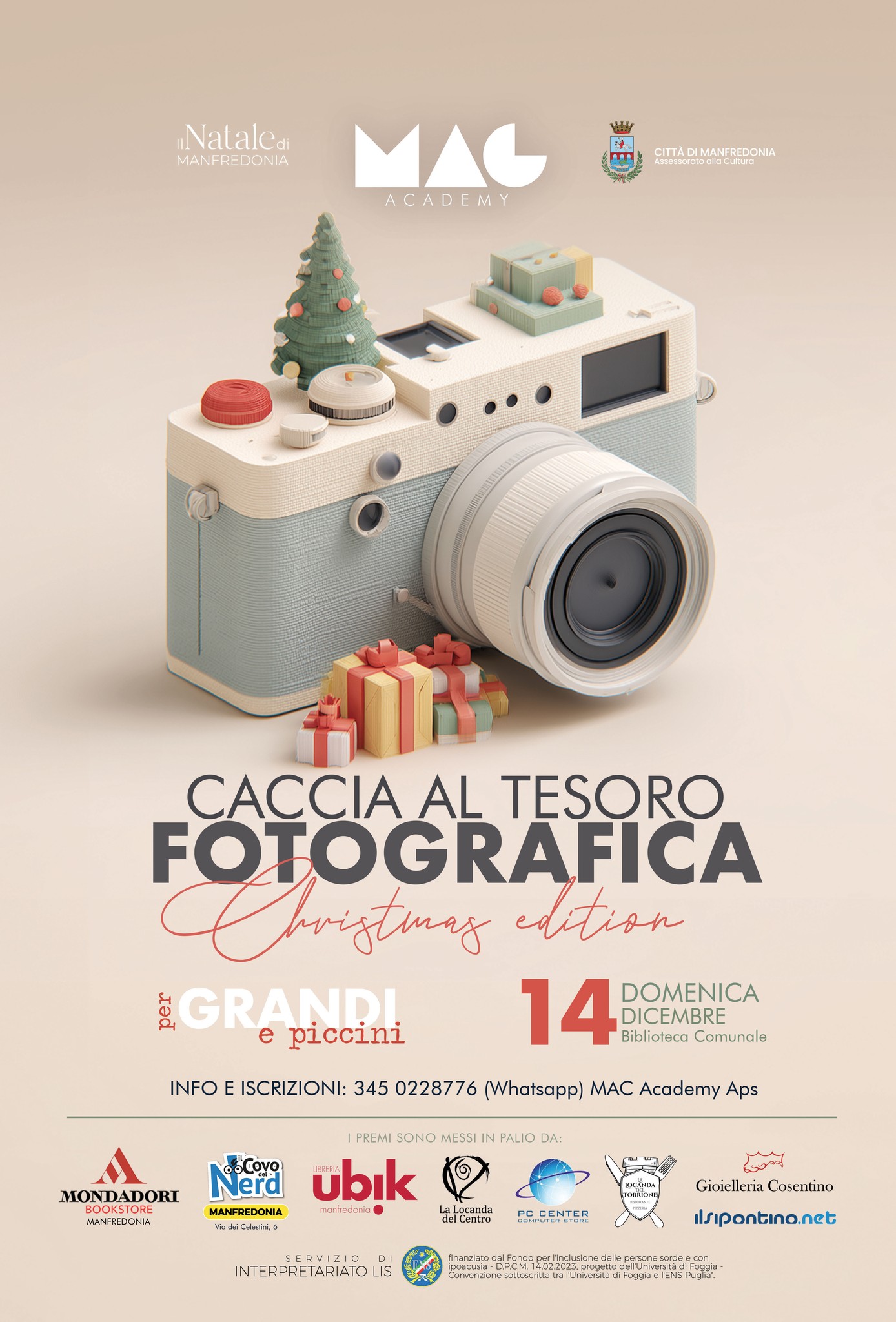 Domenica 14 dicembre sarà invece la volta della Caccia al Tesoro Fotografica – Christmas edition, un’attività pensata per grandi e piccoli, che coniuga gioco, osservazione e linguaggio visivo. La fotografia diventa strumento per guardare la città con occhi diversi, stimolando curiosità e partecipazione intergenerazionale. Anche in questo caso, l’iniziativa si terrà presso la Biblioteca comunale e garantirà piena accessibilità attraverso la presenza degli interpreti LIS.