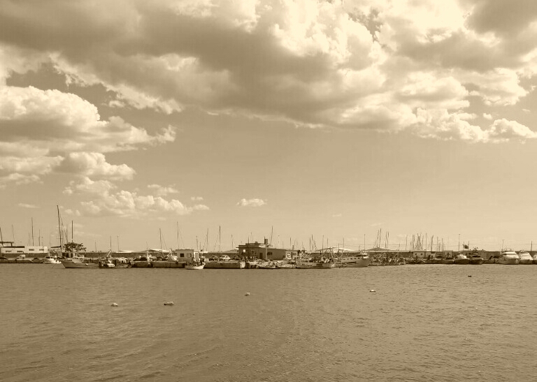 Dalla finestra, sulla destra desertica,l’anima sconcia cavalca un’onda,scandaglia il mare nel centro del Golfo ,appoggiando il cuore nella Conca d’oro.Il vento soffia ,lungo una segola tirata in alto, c’è tramontana, ed io alla finestra, mi aggrappo ,ad una nuvola di lana,che passa corta e bassa. Il mare scorre velocemente blu scuro e frastagliato, rigato con onde a spina di pesce. Nei miei occhi scorge il trabaccolo , imponente di faccia alle Saline, come una grande scultura in legno,e io bimbo con un piede contro un muro, caramelle di zucchero , e un cuore innocente.