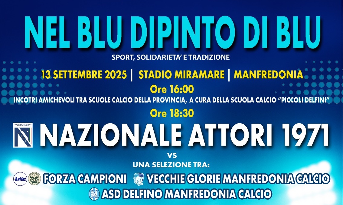Vi invitiamo a partecipare all’evento “NEL BLU DIPINTO DI BLU – Sport, Solidarietà e Tradizione”, che si terrà sabato 13 settembre 2025 presso lo Stadio Miramare di Manfredonia.
