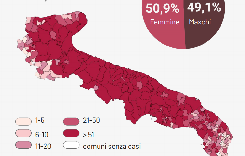 Il totale dei casi positivi Covid in Puglia è di 47.565, così suddivisi: