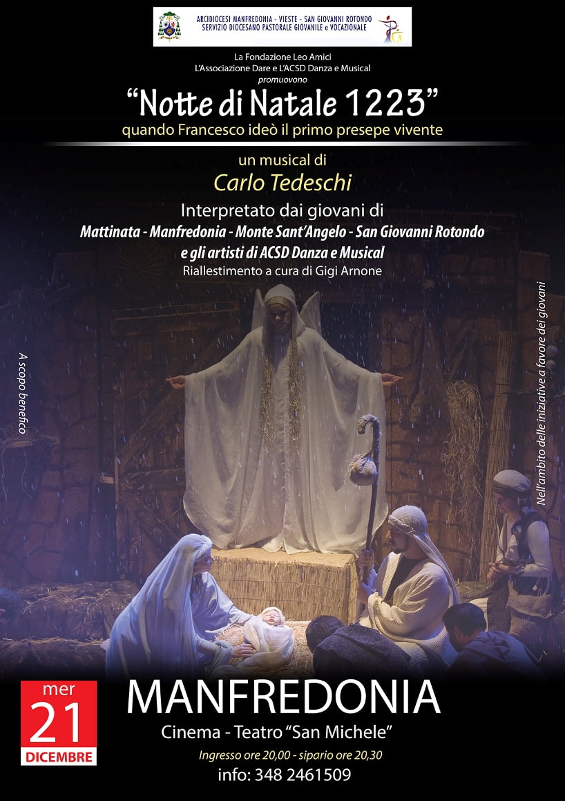 A Manfredonia e Monte S. Angelo la versione integrale in due atti del musical, grazie ai maestri Gigi e Licia ed alla collaborazione di Emanuel nel canto, anche quest’anno non mancherà il musical di Natale dell’autore e regista Carlo Tedeschi.