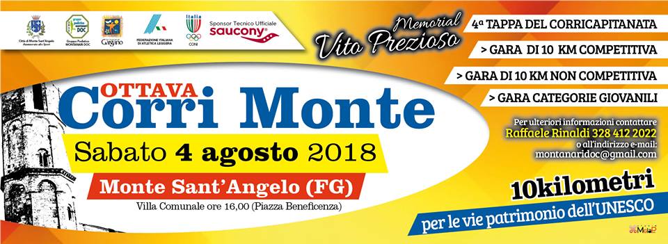 rilevante partecipazione di atleti locali, nazionali ed internazionali e da una qualità sportiva sempre più elevata, segno che la Corri Monte rappresenta un momento sportivo atteso, una valida occasione di competizione tra atleti di rilevante spessore ed un´ulteriore opportunità per promuovere Monte Sant´Angelo ed il suo patrimonio.