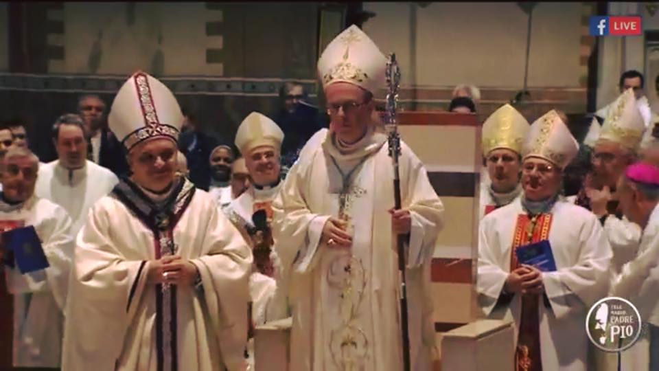 il 12 Gennaio scorso nella Cattedrale di Alba è stato ordinato arcivescovo di Manfredonia, Vieste e San Giovanni Rotondo padre Franco Moscone. A Celebrare l’ordinazione è stato monsignor Marco Brunetti di Alba, insieme al vescovo di Otranto Donato Negro e all’emerito di Torun (Polonia) Andrzej Wojciech Suski. Diversi i gruppi di Sacerdoti provenienti dal Gargano e gruppi di Preghiera di Padre Pio accorsi ad Alba per fare omaggio al neo Pastore della nostra terra. L’arcivescovo Moscone si presenterà a Manfredonia il 26 gennaio mentre il 27 farà la sua prima visita a Vieste ed il 2 febbraio sarà a San Giovanni Rotondo.