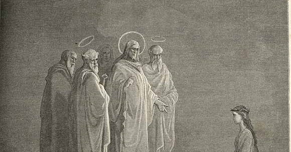 Ed iniziai_:”O pomo, che maturo,/ fosti prodotto solo, o padre antico,/ che ogni sposa ne è figlia e pure nuora;/devoto, quando posso a te supplico/ perché mi parli, tu vedi questa voglia/ e, per udirti subito, non lo dico./ Qualche volta un animale coperto di drappo/ si che è opportuno che appaia l’effetto,/per andarlo appresso, che fece, lo invoglia/ e lo stesso l’anima primiera/ mi faceva trasparire per la coperta/ quando ella per farmi piacere veniva felice (gaia)./Poi parlò: “Senza essermi profferta/ da te, vedo meglio la tua voglia/che in qualunque cosa ti è più certa/che io lo veda nel vero aspetto,/ che di esse gli fa apparire le altre cose,/ e niente egli fece di sè ricettacolo./Vuoi sapere quando Dio mi pose/ nel giardino beato, dove lei/ per così lunga strada ti dispose,/ e quanto (fu) diletto agli stessi (miei) occhi/ e la ragione propria del (gran) disdegno/ per la parlata (idioma) che usai e che io feci./ Ora figlio mio, non il gusto del legno/ fu per lui motivo di tanto esilio,/ ma solo il trapassar del segno./ Onde, la tua carnale (donna) mosse (inviò) Virgilio/ quattromila trecento e due volumi (giri)/ del sole volle questo concilio (120)