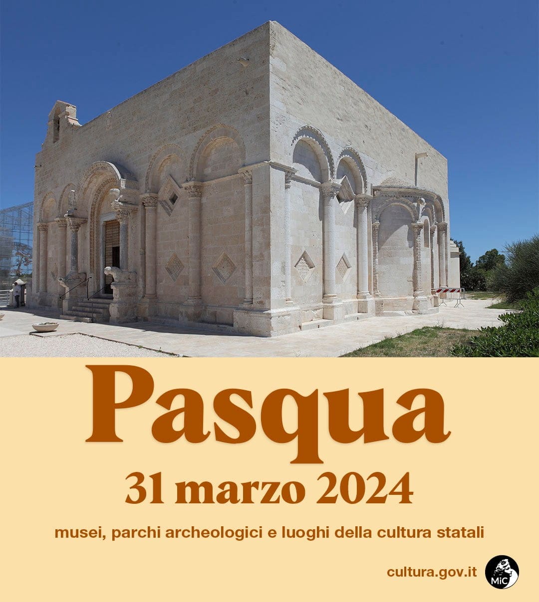 In occasione delle festività pasquali, il Parco Archeologico di Siponto sarà aperto con i seguenti orari: