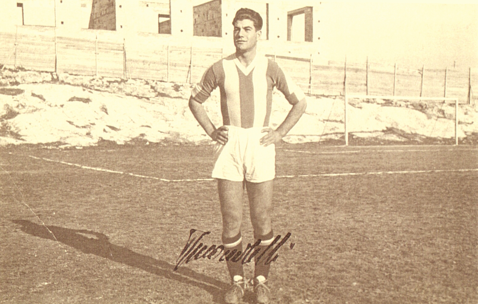 Nella foto la dedica sulla cartolina consegnata il 23-10-1937, quando il calciatore giocava in serie A con il Livorno Calcio.