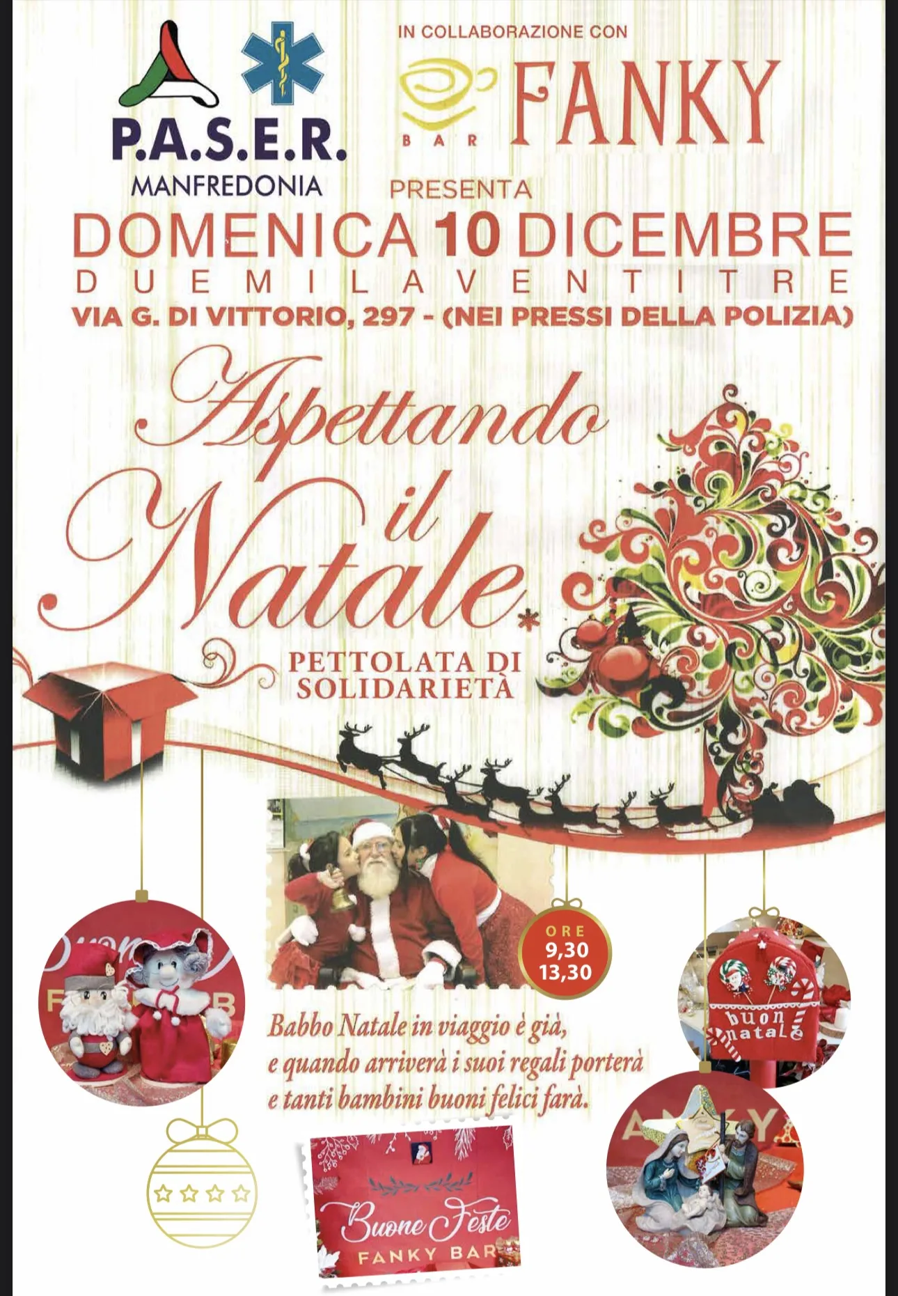 La prima di queste è prevista domenica 10 dicembre dalle ore 9.30 alle 13.30 presso il Bar Fanky (accanto al Commissariato di P.S. di Manfredonia) con la consueta Pettolata della Solidarietàintitolata “Aspettando il Natale”, che è anche un modo per festeggiare con i quartieri a Sud della città (Siponto, Comparti, Di Vittorio, Stazione ecc.) l’arrivo delle festività natalizie.