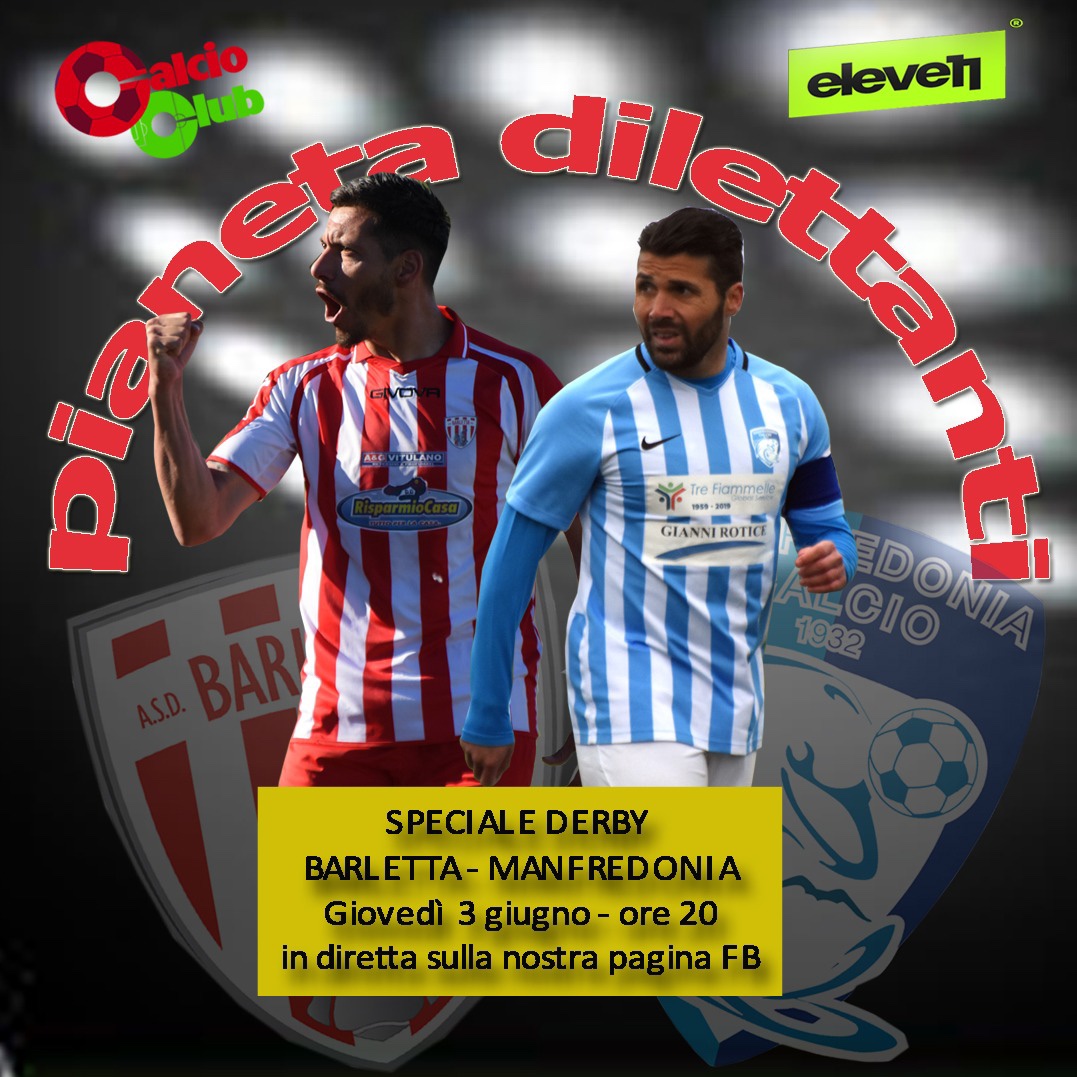 Torna sulla pagina FB di Calcio Club “Pianeta Dilettanti” e torna ad occuparsi di Eccellenza con una puntata speciale dedicata al big match Barletta 1922-Manfredonia, in programma domenica 6 giugno allo stadio comunale “San Sabino” di Canosa. È l’ultima giornata del campionato in forma ridotta di questa stagione, prima della coda dei playoff che decreteranno l’unica promozione in serie D dopo la finalissima con la vincente del girone B. Una sfida che vale il primato nel girone A (i sipontini sono in testa con un punto di vantaggio sui biancorossi) e che vedrà anche il ritorno degli spettatori, seppure in forma limitata nel rispetto delle norme anti-Covid.