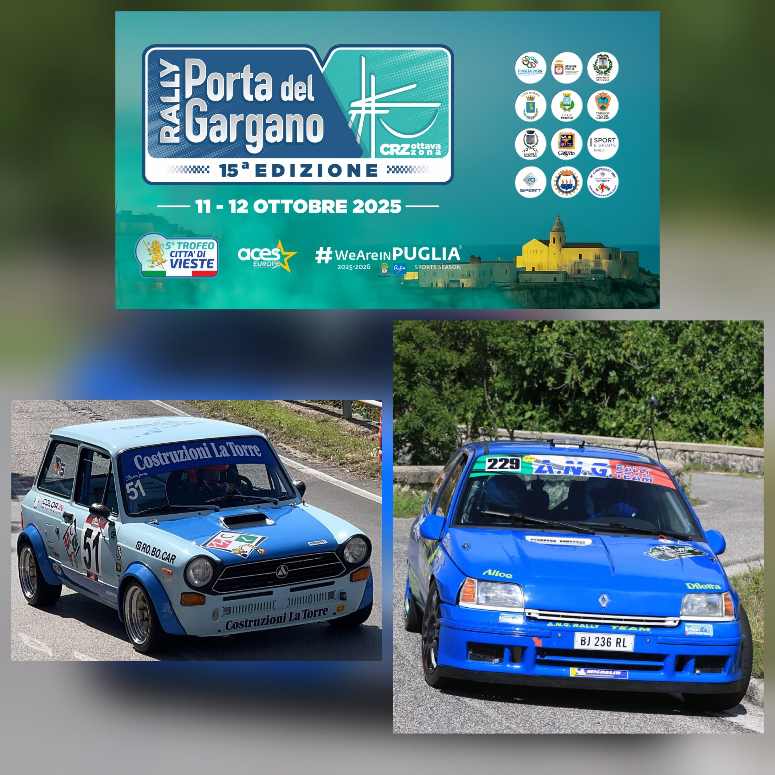 Vi ricordiamo che stiamo lavorando alla nostra gara, il 15° Rally “Porta del Gargano” – 5° Trofeo “Città di Vieste”, in programma l’11 e 12 ottobre. Ultima prova della Coppa Rally di Zona – Ottava Zona, con una grande novità: la prova spettacolo! Non mancate… vi aspettiamo a Vieste!