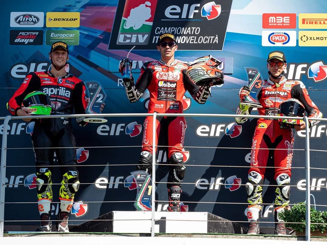 La Ducati Barni Racing di Pirro è rimasta però incollata all’Aprilia Nuova M2 di Savadori, fino al momento in cui Pirro ha sferrato l’attacco decisivo passando Savadori e andando a vincere. Con Savadori che ha provato fino alla fine a rimanere in scia al Tester Ducati.