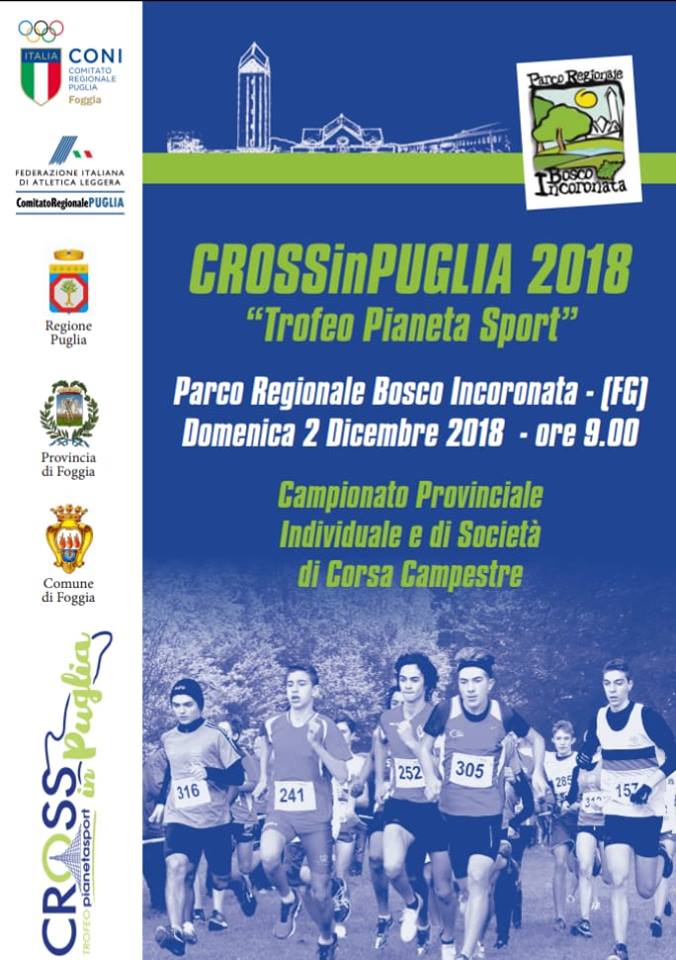 Per gli amanti del genere il 02 dicembre p.v. si terranno a Borgo Incoronata (FG) i “Campionati Provinciali individuali e di società FIDAL di corsa campestre”, evento fortemente voluto dalla locale A.S.D. Gargano 2000 Manfredonia e dal suo presidente Giovanni Cotugno. Si tratta di una classica competizione autunnale dell’atletica leggera (N.D.R.: originariamente definita cross-country podistico) che si disputa su percorsi erbosi, fangosi, gibbosi e sterrati!