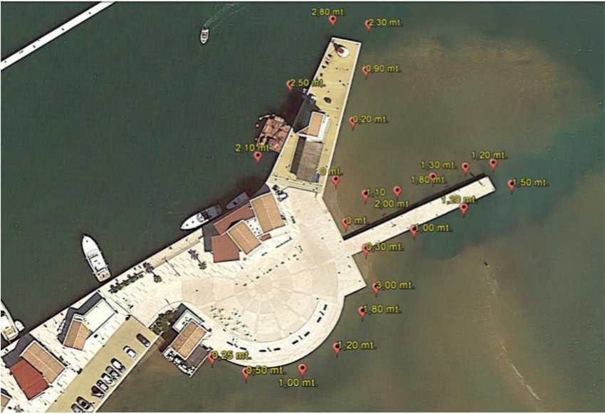 L’attuale situazione dei fondali presenti all’imboccatura del porto di Rodi Garganico risulta essere