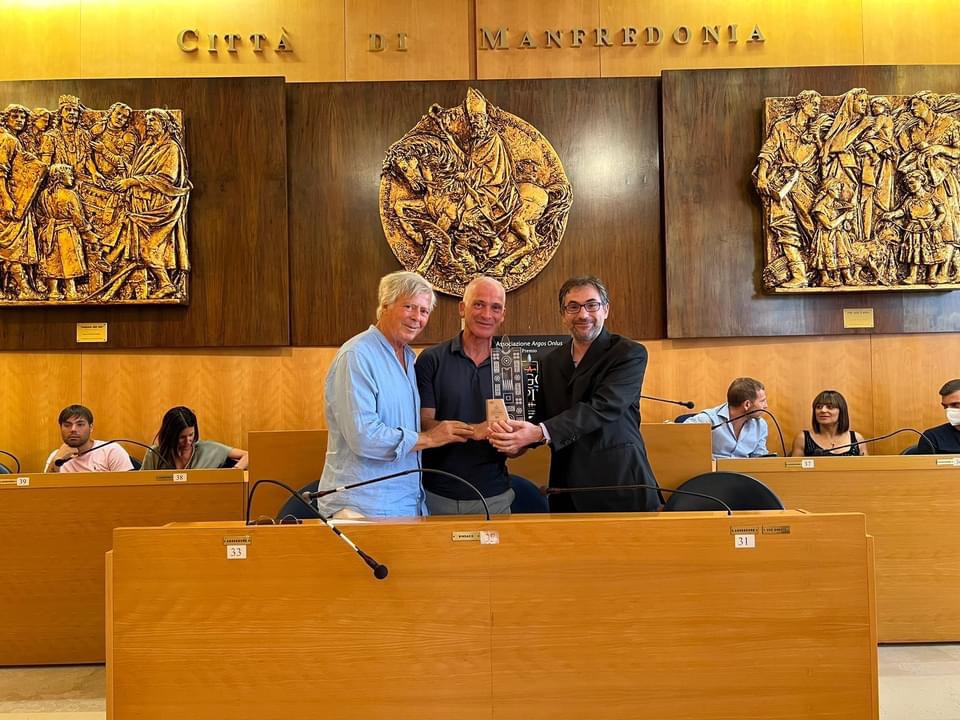 Il Covid gli ha impedito di essere presente il 29 luglio alla cerimonia di consegna del Premio Argos Hippium, ma oggi il sipontino Diego Gatta ha potuto finalmente ritirare il suo premio presso l’Aula Consiliare del Comune di Manfredonia, sua città natale, alla presenza di tutta la Giunta, parenti ed amici.