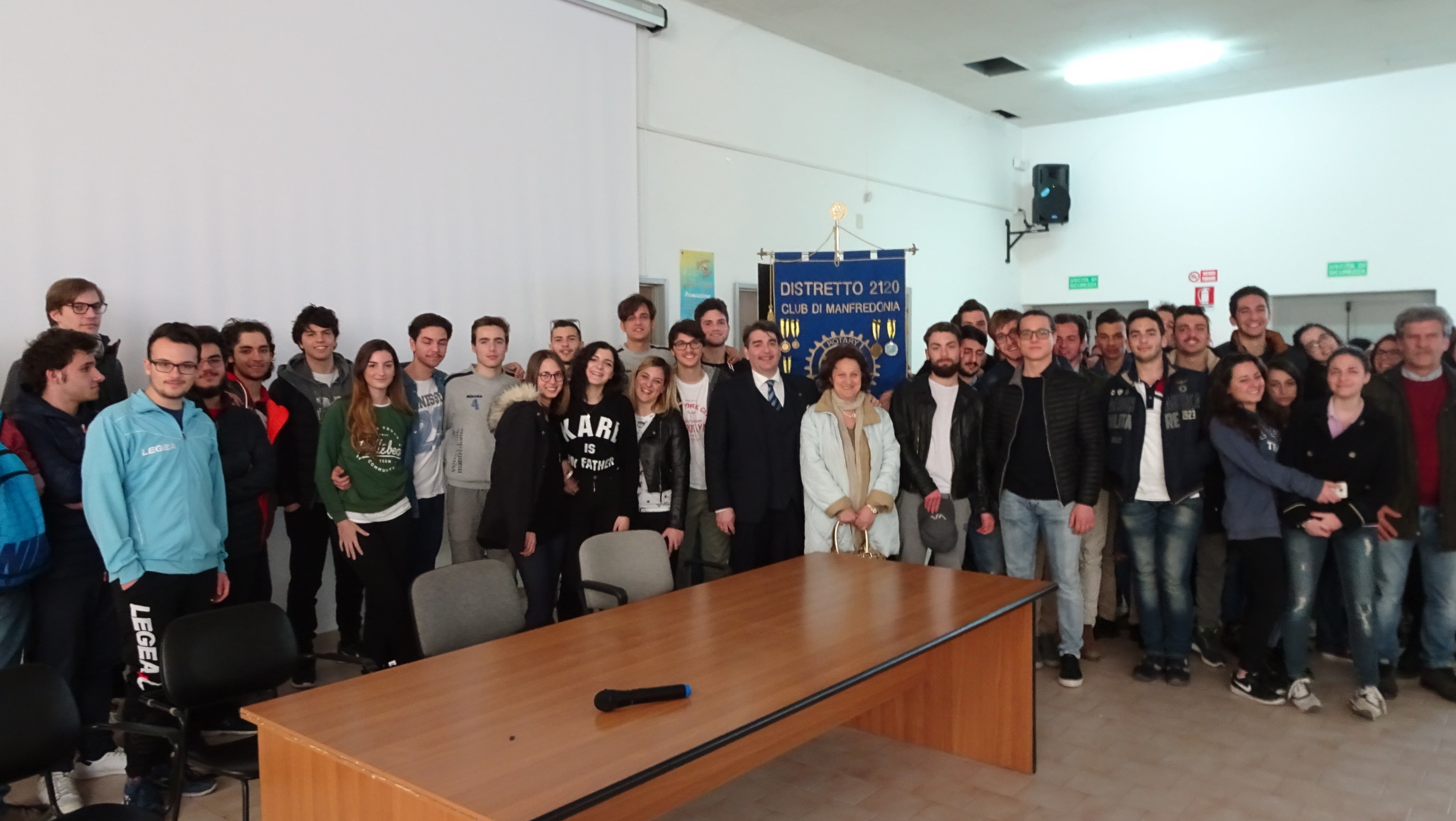 “Sabato 18 marzo si è tenuto , presso l’Aula Magna del polo liceale, il primo incontro del ciclo “professionisti a scuola” organizzato dal Rotary Club di Manfredonia. Il ciclo tende ad informare i ragazzi, con le relazioni tenute dai soci del club che si alterneranno negli appuntamenti, rigUardo ai problemi e le difficoltà del mondo delle professioni. Dall’incontro, tenuto dal presidente del Club l’avvocato Mario Frattarolo, è scaturito un piacevole e vivace dibattito durante il quale sono state fornite risposte alle domande formulate dagli studenti in merito alla professione forense. Il prossimo appuntamento è fissato per il 5 maggio”