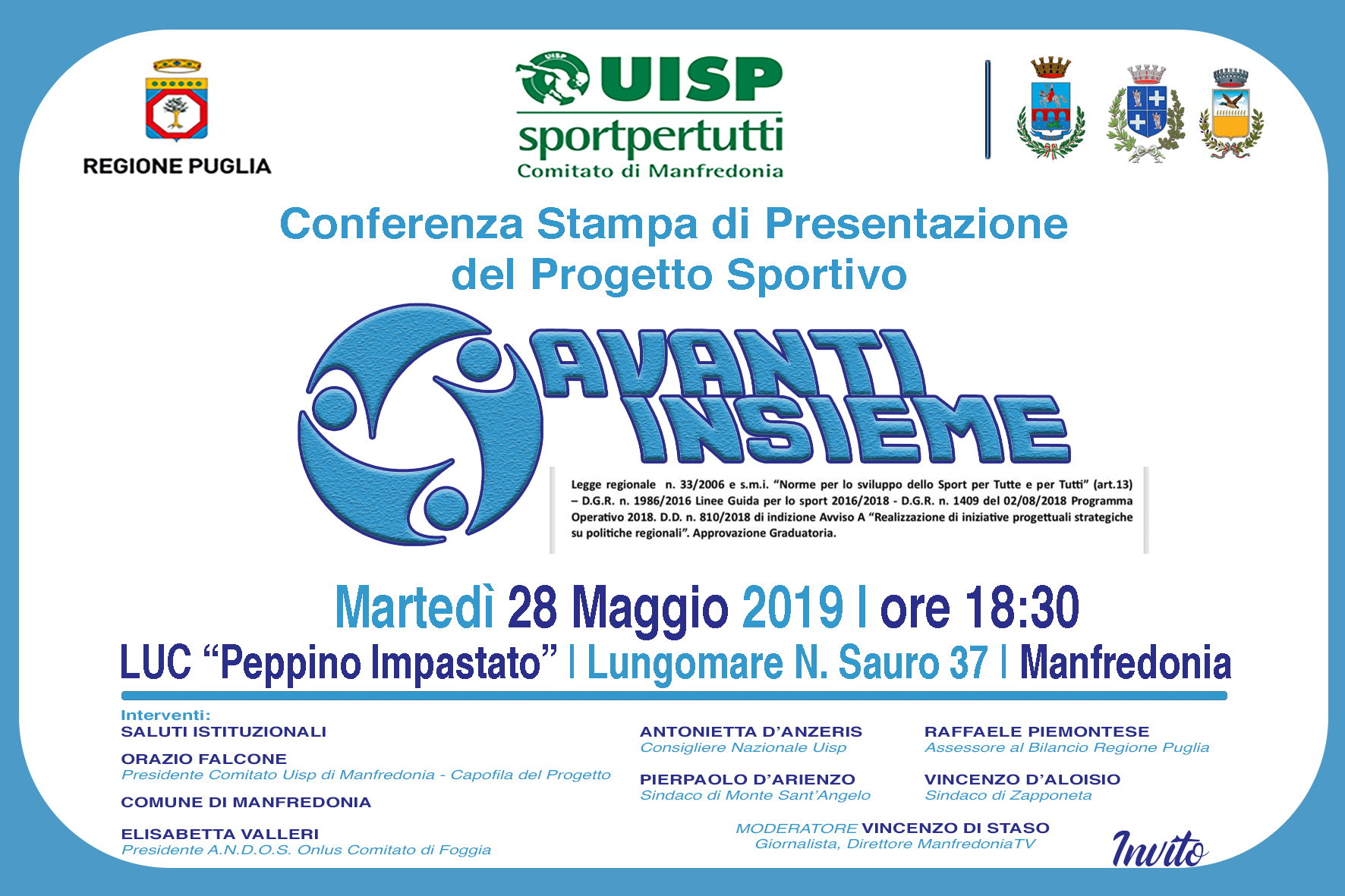 Ci sarà una conferenza stampa di presentazione del progetto sportivo “Avanti Insieme” – Sport e Inclusione Sociale, di cui il Comitato Uisp di Manfredonia è soggetto capofila.