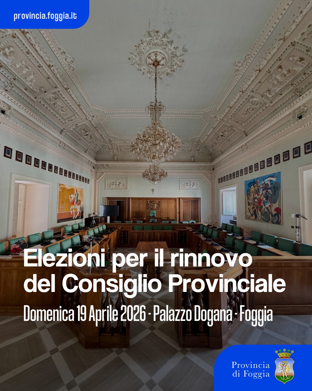 La Provincia di Foggia informa che, ai sensi dell’articolo 1 della Legge 7 aprile 2014, n. 56 e successive modificazioni, sono stati convocati per il giorno 19 aprile 2026 i comizi elettorali per il rinnovo del Consiglio Provinciale.