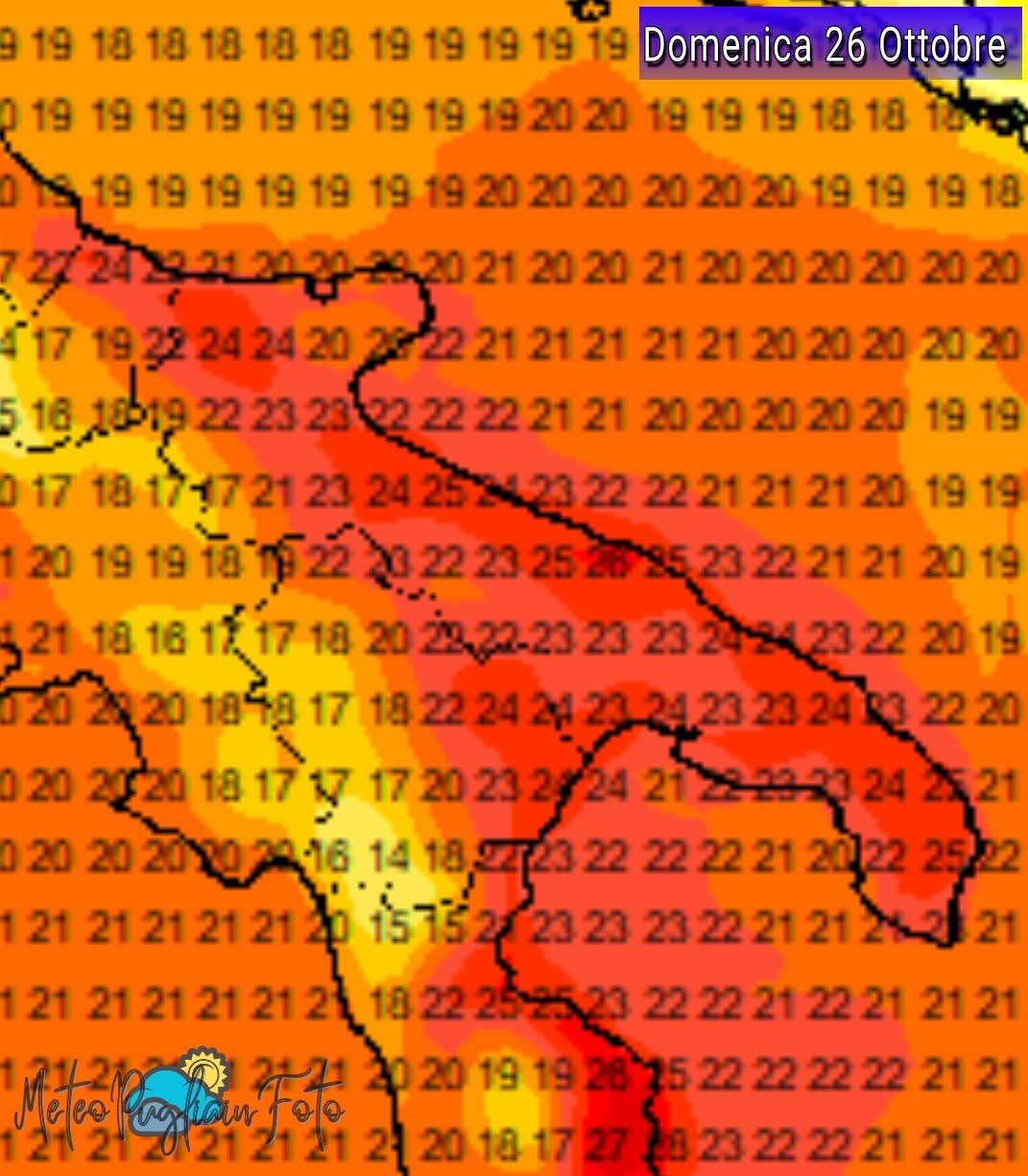 📡 #DOMENICA mite con temperature massime che supereranno i 25°C solo nella giornata di domani. Aria mite che verrà agevolata dai venti di libeccio e scirocco. Sarà un richiamo caldo/umido che durerà meno di 24 ore dato che dal pomeriggio di domani sulla Puglia si affacceranno nuove deboli pioggie con rotazione dei venti da nord e deciso calo termico nella giornata di #Lunedi.