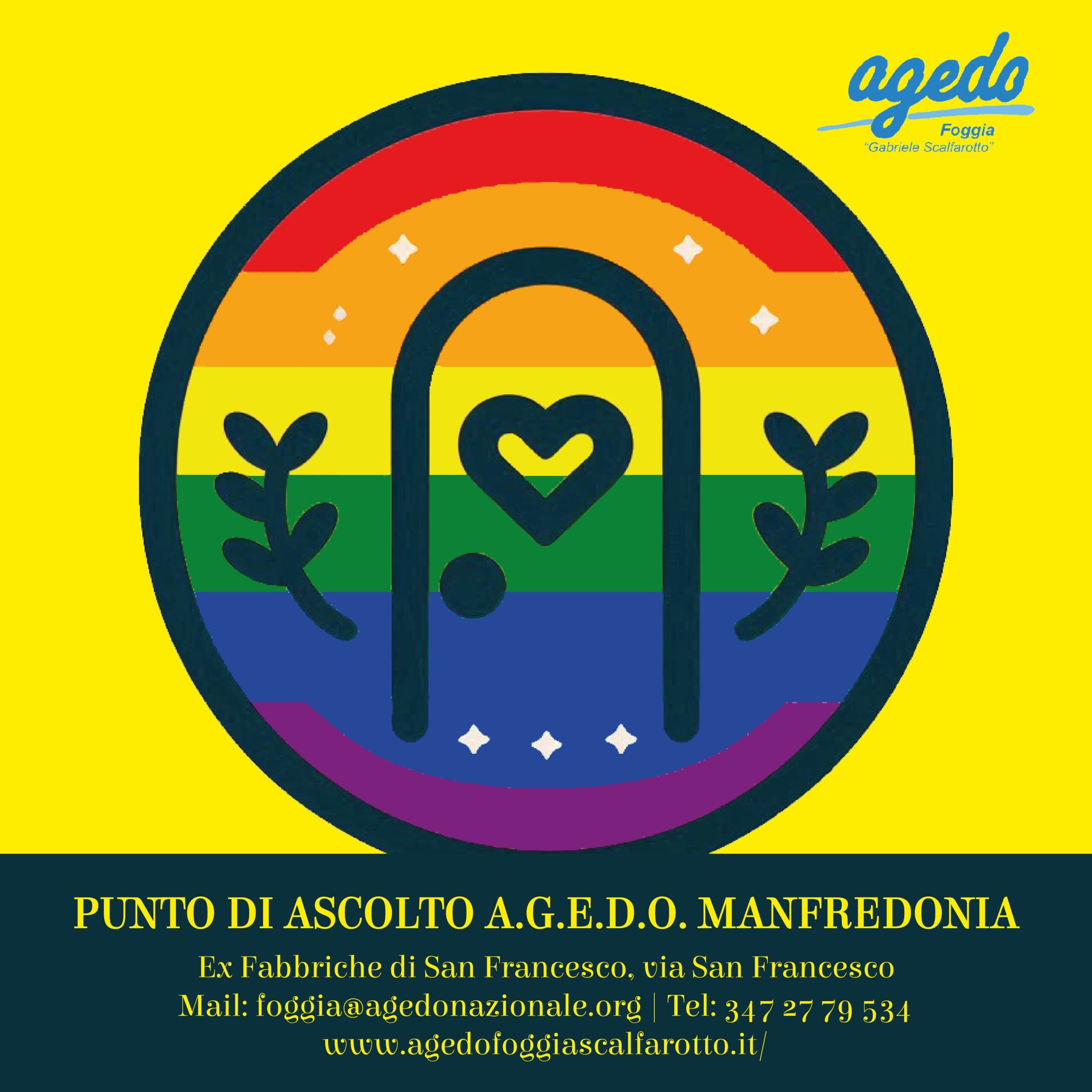 È attivo a Manfredonia, presso le Ex Fabbriche di San Francesco, il punto di ascolto A.G.E.D.O., l’Associazione di Genitori, parenti, amiche e amici di persone lesbiche, gay, bisessuali, transgender. Sarà possibile entrare in contatto con la rete A.G.E.D.O. chiamando il numero telefonico 347 27 79 534 o inviando una mail a foggia@agedonazionale.org.
