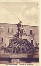 Manfredonia – COME ci teneva il fascio alle sculture di bronzo: parlo della statua del pescatore – in Piazza Marconi. Piazza epicentro al tempo delle attività quotidiane: c’era una piccola biglietteria per la ferrovia, con l’arrivo del treno quasi all’entrata di Corso Manfredi.