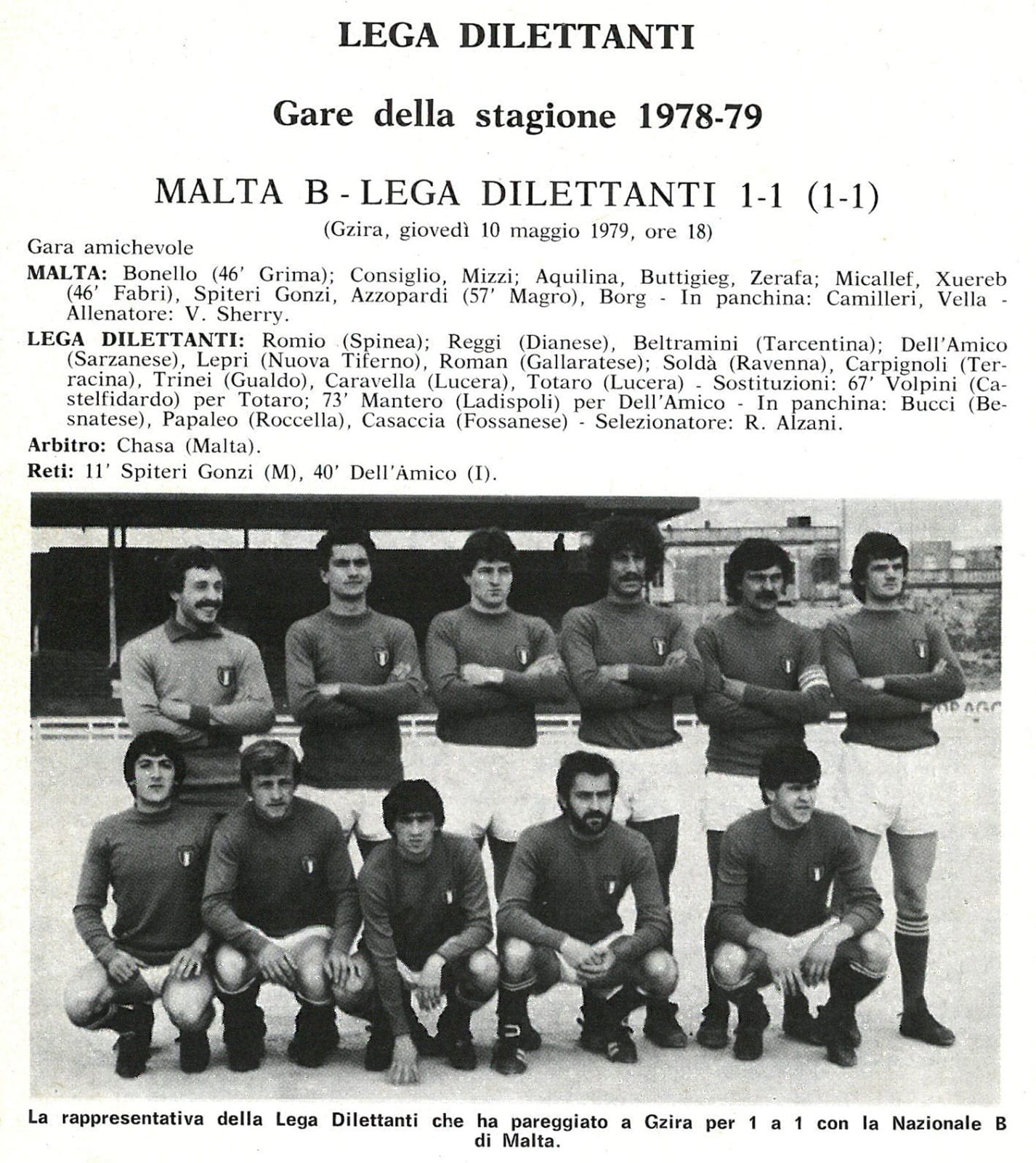 Foto 1, almanacco Panini 1979, Michele Totaro con la nazionale a Malta.