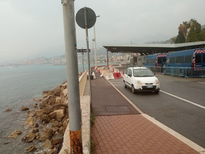 Il confine tra Italia e Francia, sullo sfondo a sinistra, Mentone