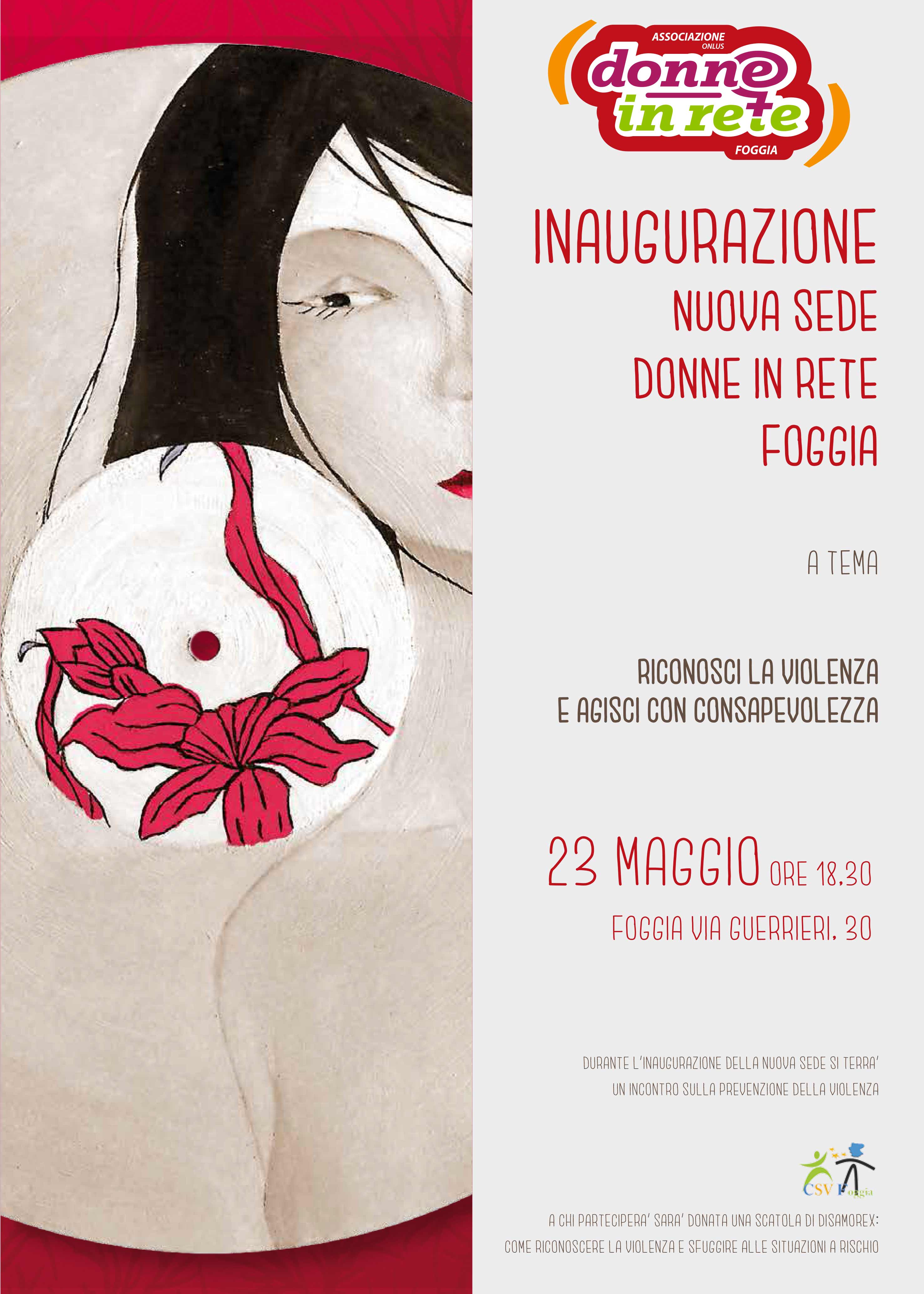Mercoledì 23 maggio 2018 alle ore 18,30 l’Associazione Donne in Rete inaugura la nuova sede sita in Via Matteo Luigi Guerrieri, n. 30.