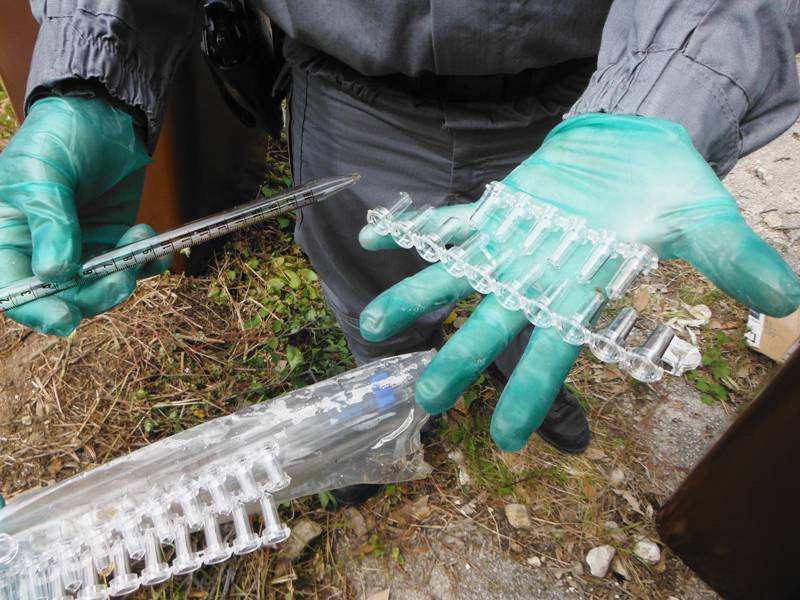 In data 05 maggio è stato necessario anche l’intervento di una squadra dei Vigili del Fuoco (NBCR) per il recupero di alcune casse di rifiuti speciali pericolosi ospedalieri ( provette, reagenti ed altro) ritrovati abbandonati in una scarpata in agro di Rodi Garganico cuore del Parco Nazionale del Gargano.