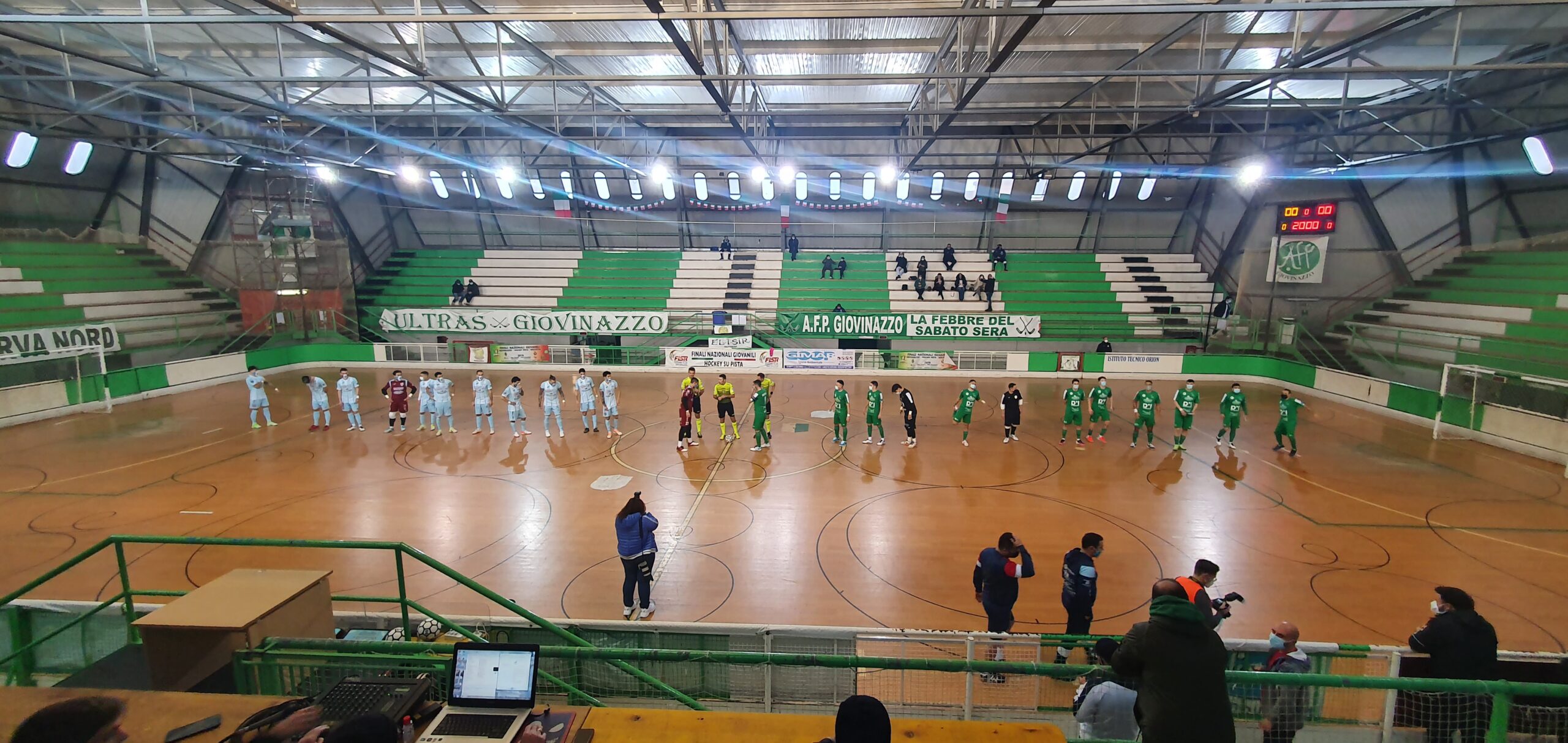 Giovinazzo che scende in campo con Di Capua, Lucao, Lanziotti, Restaino, Jander. Sipontini che rispondono con Lupinella, Crocco, Raguso, Scigliano e Sampaio.