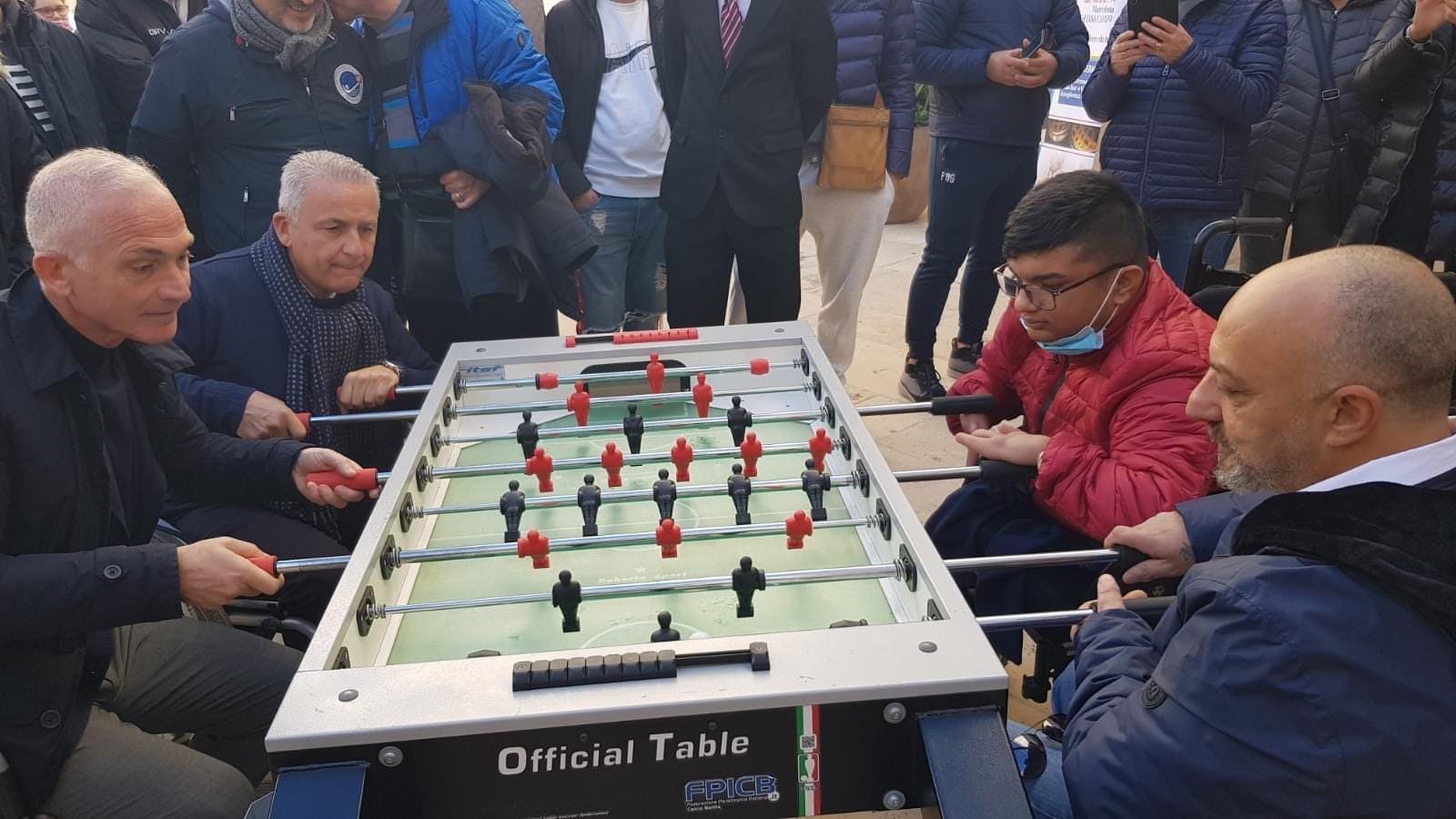Superare le barriere fisiche e culturali per la disabilità è una partita che Manfredonia deve vincere anche grazie all’impegno dell’Amministrazione comunale. Ringrazio Francesco per averci fatto giocare una “partita di biliardino speciale”, in carrozzella come lui, per farci comprendere come con l’impegno ed il buonsenso tutti dobbiamo avere gli stessi diritti ed opportunità.