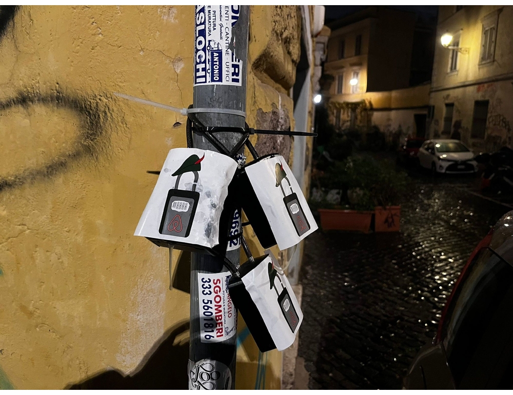 Nella notte nuova azione in tutta Italia della “banda Robin Hood” contro i B&B: gli attivisti hanno imbrattato con colla e sticker gli smart locker utilizzati per gli affitti brevi, lasciando istruzioni per il sabotaggio fai da te.