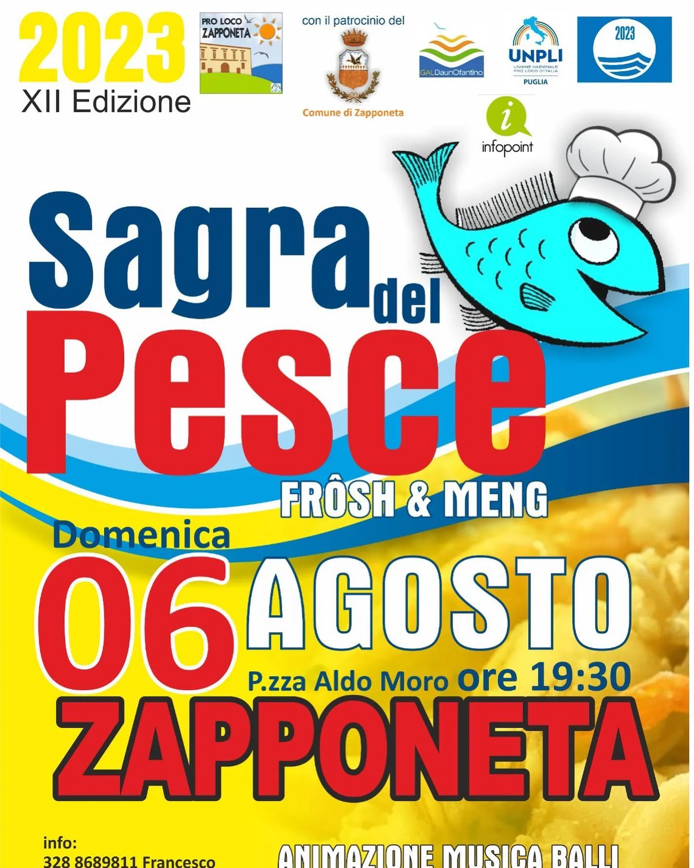 Il Presidente della Pro Loco di Zapponeta, dott. Francesco Proce, entusiasta annuncia il tradizionale appuntamento con la Sagra del Pesce, un evento cult dell’estate pugliese, giunto alla sua XII edizione.